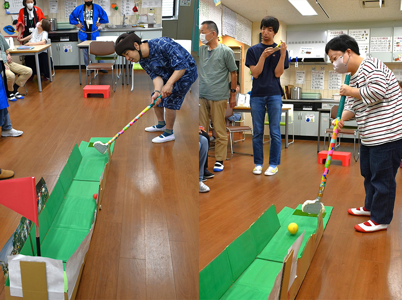 2階ではパターゴルフと盆踊り