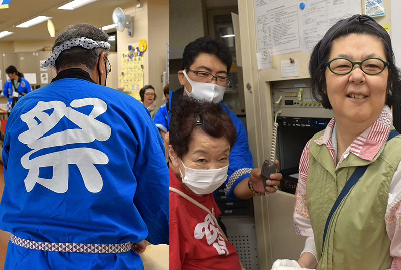 スタッフは法被を着てまつりを盛り上げます / 館内放送で開会宣言です